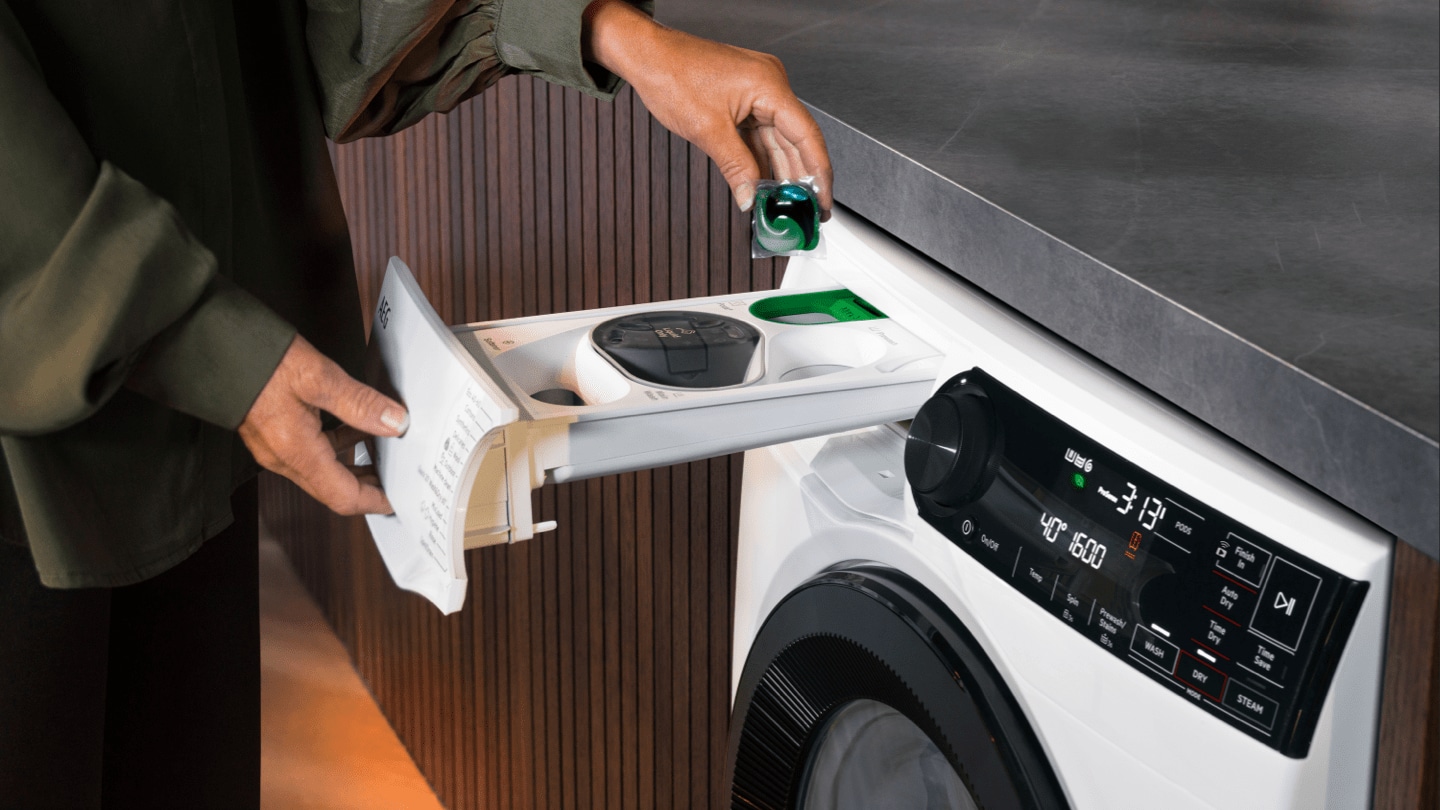 **Belső teszt alapján, 30°C-os mosás, 1 órás pamut programon; kapszula az UniversalDose fiókban, illetve kapszula a dobban.