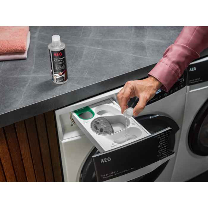 *Használjon gőzt a ruhák felfrissítéséhez, és spóroljon meg akár 40 liter vizet ciklusonként. 1 kg finom ruhaneműn tesztelve, Delicates programmal összehasonlítva.