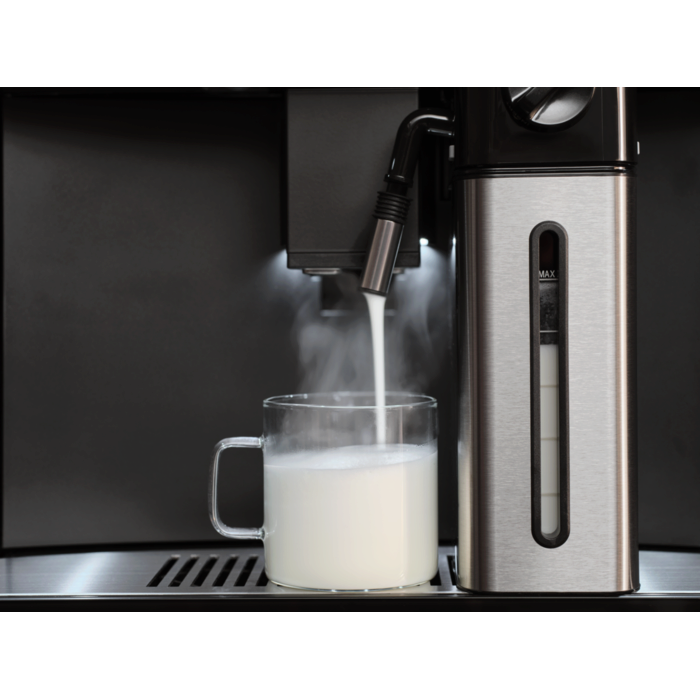 Beépített Touch+ otthoni kávégép: eszpresszó vagy más forró ital egy érintésre, pontosan úgy, ahogy Ön szereti. Elegáns, matt fekete dizájn nagyméretű érintőképernyővel, harmonikusan illeszkedve a többi matt fekete AEG készülékhez.