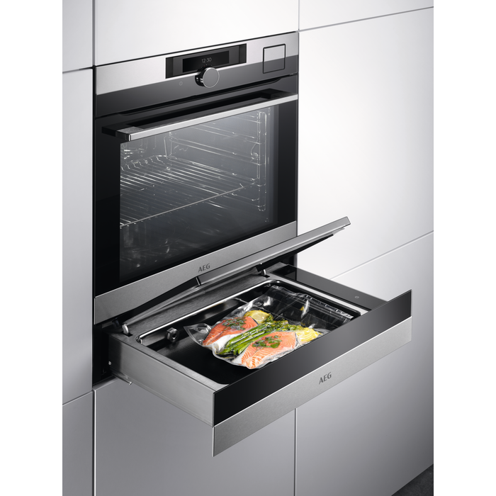 A vákuumozó fiók otthonába hozza a legmodernebb éttermi konyhatechnológiát. A Sous Vide funkció használatával vákumzárt tasakban, a fűszerekkel és ízesítőkkel együtt, alacsony hőmérsékleten párolhatja az ételt. Ez a módszer rendkívüli mértékben fokozza az ízeket, és páratlan puhaságot és textúrát garantál.