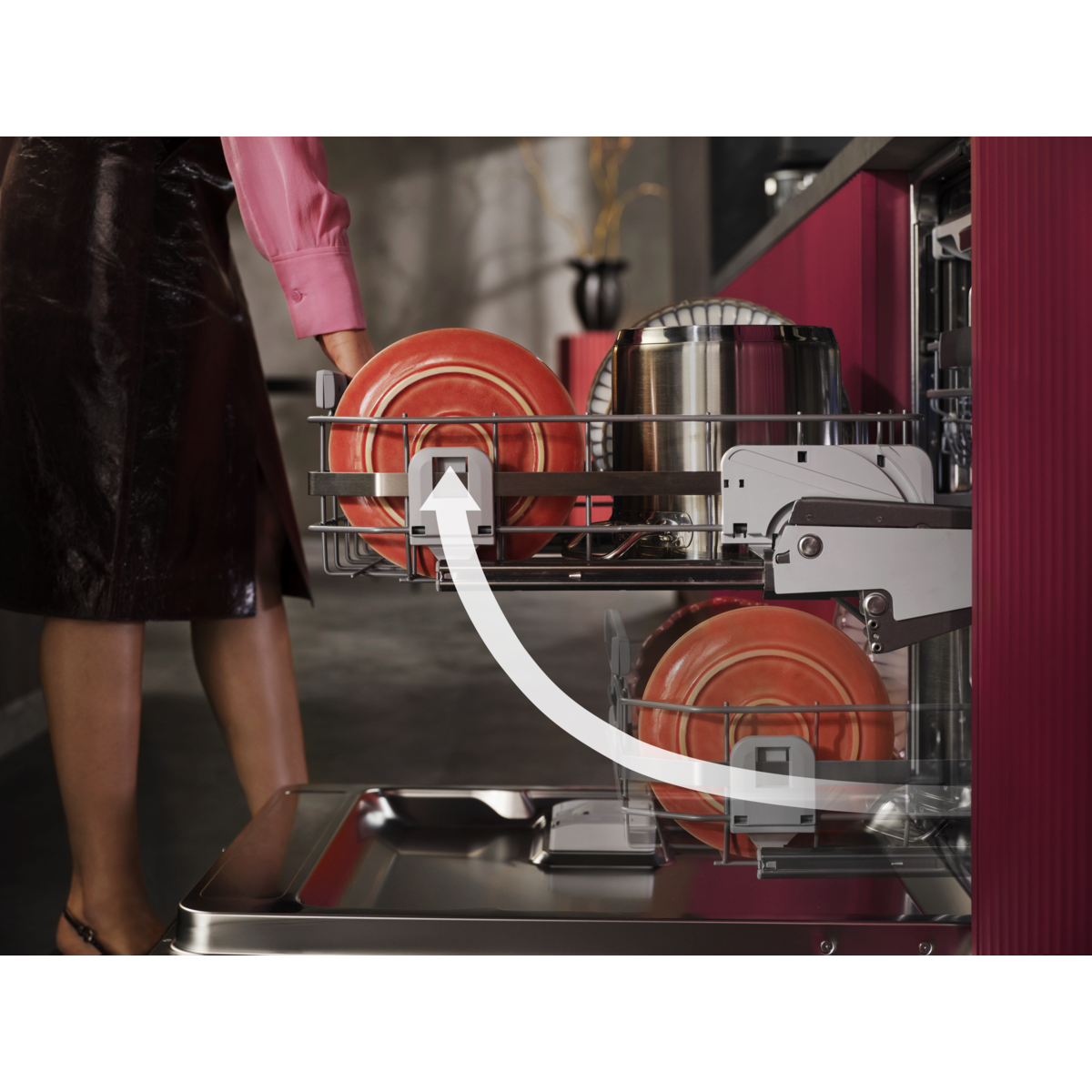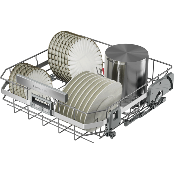 A ComfortLift® technológia 25 cm-rel megemeli a teljesen megpakolt alsó kosarat, így a be- és kipakolás gyorsabb és kényelmesebb. A speciális zsanérok a kosár kihúzásakor finoman felemelik azt a felső kosárral egy szintre.