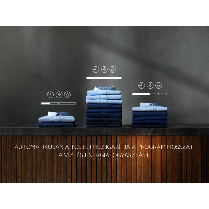 A ProSteam® 7000-es mosó-szárító gép egy olyan 3-IN-1 készülék, amely optimalizálja ruhaápolási folyamatokat a mosási, szárítási és gőzprogramokkal. A gőzprogram során a gőz 96%-kal kevesebb vizet használ*, és kíméletesebb, mint a mosás, így a ruhák hosszabb ideig szépek maradnak.